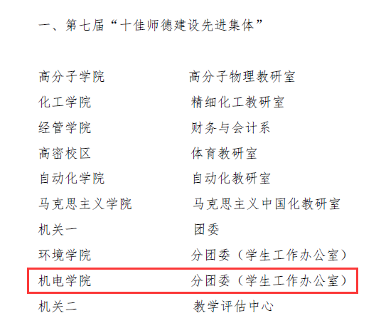 近日,学校公布了第七届“十佳师德建设先进集体”、第十届“十佳育人标兵”、2019年度青岛科技大学先进集体、先进工作者的评选结果,开云官网获多项荣誉。