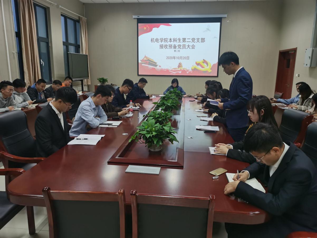 10月20日下午,开云官网本科生第二党支部在机电楼518会议室隆重召开接收预备党员支部大会,支部全体党员参加会议,会议由支部书记王娟娟主持。