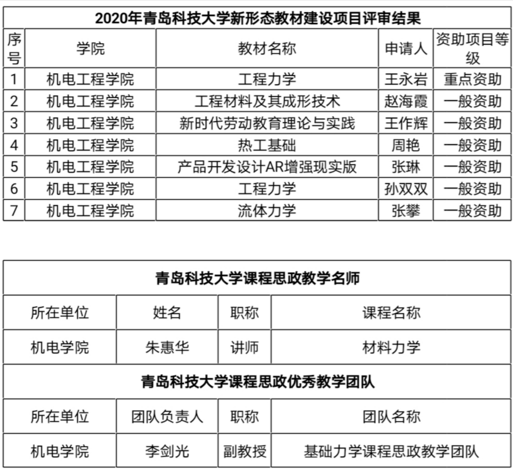1名教师获校课程思政教学名师称号,1个教学团队获校课程思政优秀教学团队,13个项目获校教改立项,6个项目获校教改专项立项,7部教材获校新形态教材建设立项资助,5名教师获校教学效果奖。