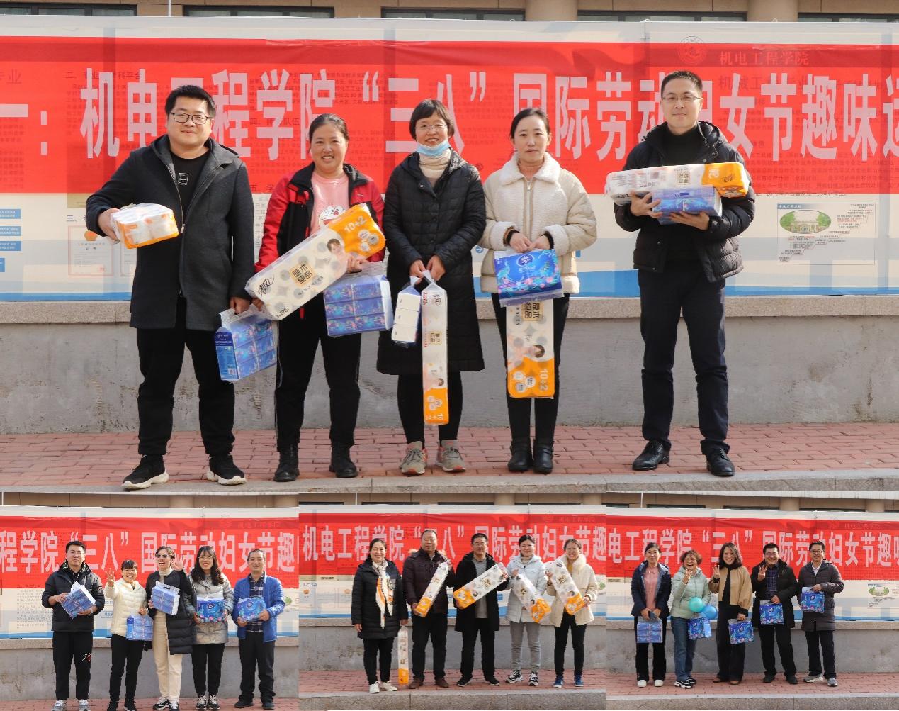 在一片欢声笑语中,三八趣味运动会接近了尾声。学院工会为获奖老师颁发奖品。