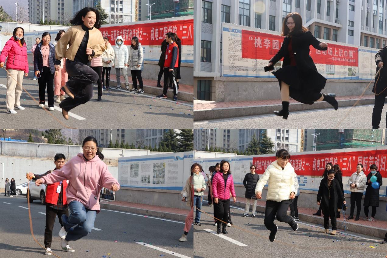 跳绳比赛中,教师们大展身手,穿梭在绳线之中。