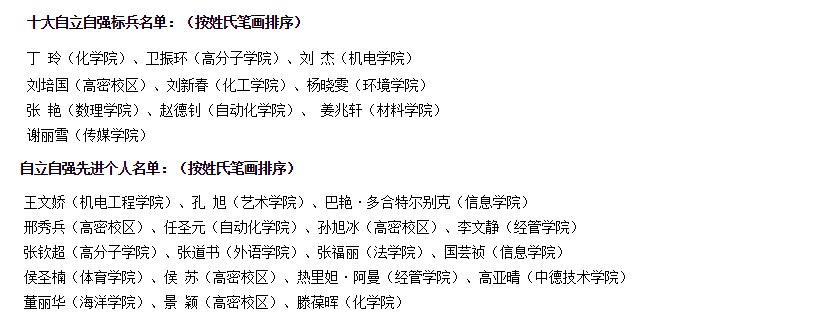 近日,在青岛科技大学第十七届“十大自立自强标兵”评选结果公示中,开云官网机械181班刘杰同学荣获“十大自立自强标兵”,新能源182班王文娇同学获得“自立自强先进个人”。