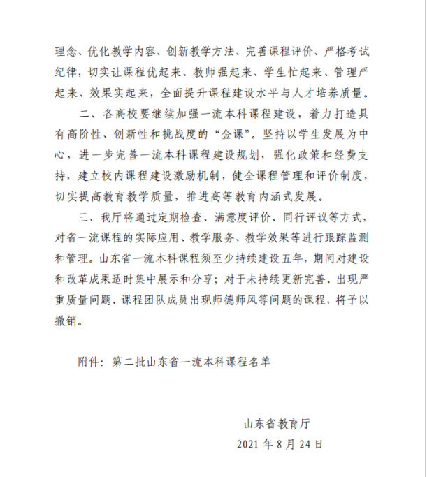 在山东省教育厅日前发布的《关于公布第二批山东省一流本科课程认定结果的通知》(鲁教高函〔2021〕24号)中,开云官网何燕教授牵头的《传热学》和付平教授牵头的《机械制造基础》均被认定为山东省一流本科课程(线下课程),其中何燕教授的《传热学》被推荐参评国家一流课程。