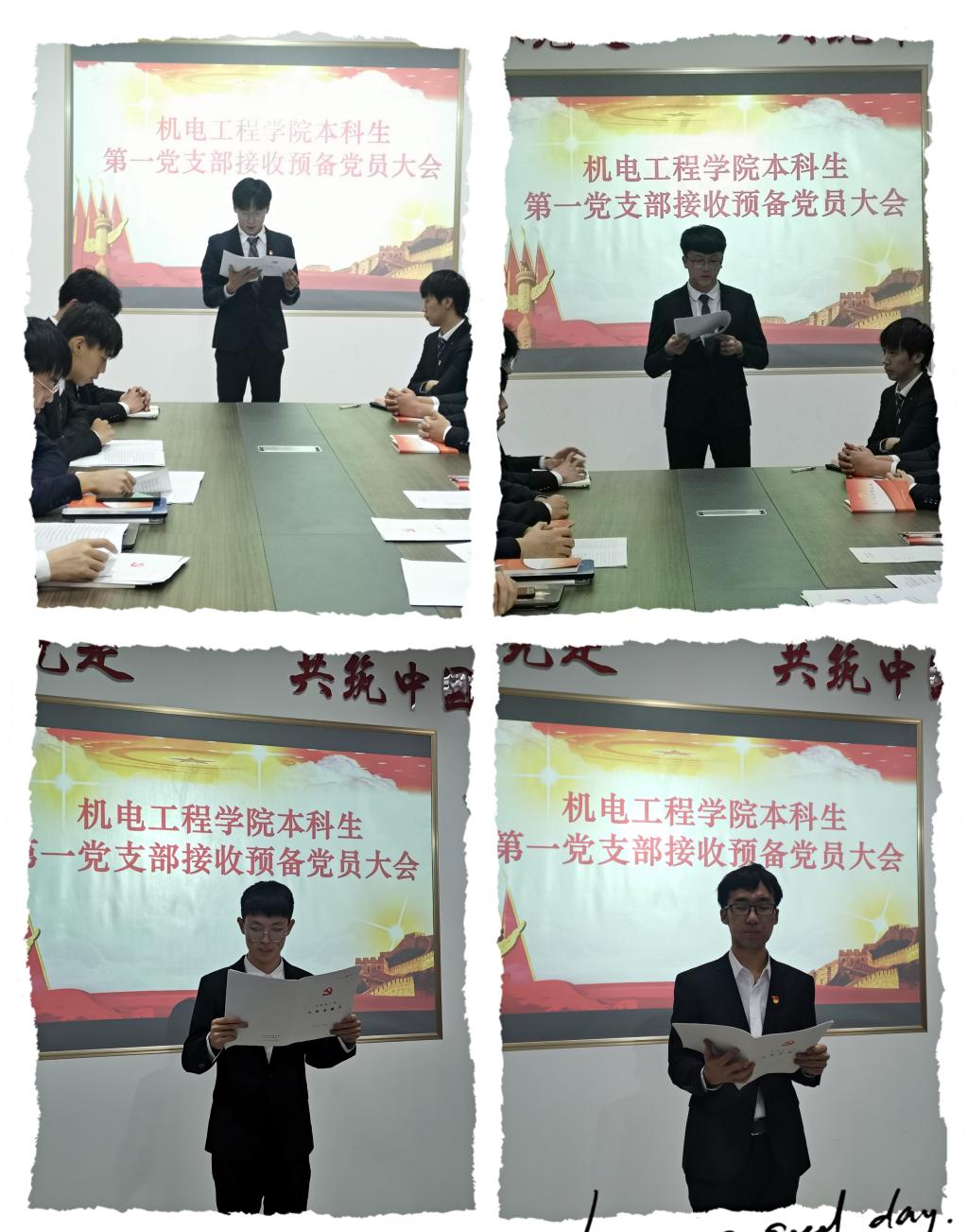 11月25日,开云官网本科生第一党支部在机电529先后三次召开接收预备党员大会,会议吸纳了张致远等14名同志加入党组织。会议由支部书记于超主持,全体党员参加。