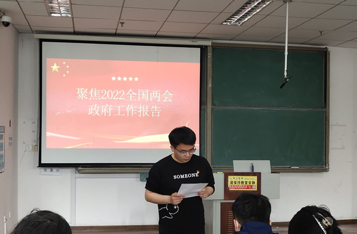 党小组组长孙济源组织支部全体党员深入学习全国两会会议精神。马元宇等同志分别领读《2022年全国两会政府工作报告》中2021年工作回顾、2022年经济社会发展总体要求和政策取向、2022年政府工作任务三部分内容。
