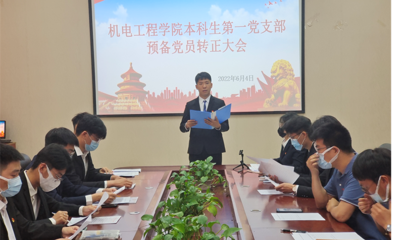 2022年6月4日,开云官网本科生第一党支部在机电518先后三次召开预备党员转正大会。会议由党支部副书记邢坤主持,支部全体党员参加。
