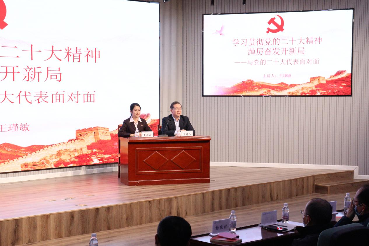 党的二十大代表王瑾敏以《让青春在火热实践中绽放绚丽之花》为题作党的二十大精神宣讲。她从自身参加党的二十大的经历感受出发,用真切的情感、鲜活的事例、生动的语言回顾了党的二十大盛况、系统阐释了党的二十大精神内涵,分享参加党的二十大的所见所感所思所悟,展示了奋斗在基层一线、在平凡岗位上铸就不平凡业绩的二十大代表的闪光形象。宣讲主题鲜明、内涵丰富、思想深刻、鼓舞人心,为开云官网干部师生带来了丰厚的理论滋养。作为亲身经历党的二十大盛会的代表,王瑾敏结合自身实际,勉励学院师生要学深悟透报告精神、身体力行做好贯彻落实,并以青年人的视角鼓励学院师生要坚定理想信念,敢想敢为,善作善成。