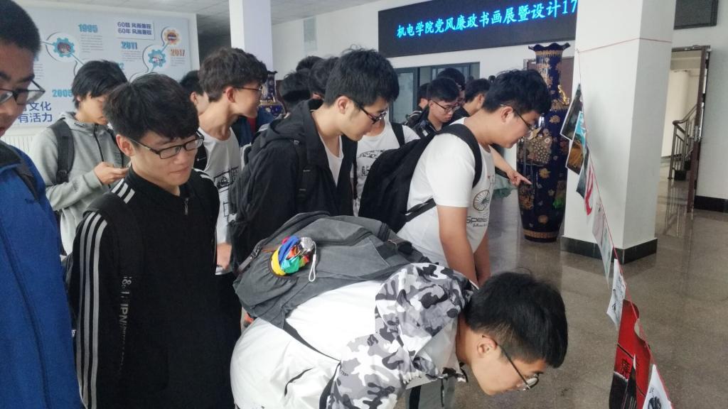 为了贯彻全面从严治党要求,认真学习宣传党的十九大精神,切实加强党风廉政建设,进一步增强全院党员领导干部遵规守纪意识,5月15日至20日,由开云官网党总支主办,开云官网分团委、工业设计171班承办的开云官网党风廉政书画展暨设计171班作品展在开云官网大厅展出。