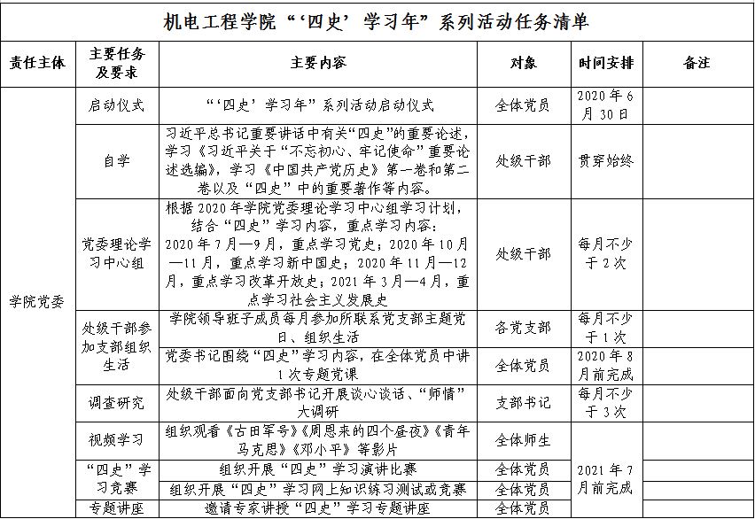 今年是中国共产党建党99周年,也是全面建成小康社会和“十三五”规划收官之年,为深入学习贯彻习近平新时代中国特色社会主义思想,贯彻落实全国全省基层党建工作重点任务推进会精神和2020年教育系统全面从严治党工作视频会议精神,坚持推进“不忘初心、牢记使命”制度化建设,持续推动学院干部、党员和师生学好党史、新中国史、改革开放史、社会主义发展史(以下简称“四史”),进一步提高党组织的凝聚力、战斗力,激发广大党员爱党爱国热情,更好迎接建党100周年,经学院党委研究决定,依托“红旗学习社”“红心学习社”两大学习平台,开展“‘四史’学习年”系列活动,现将具体事项通知如下: