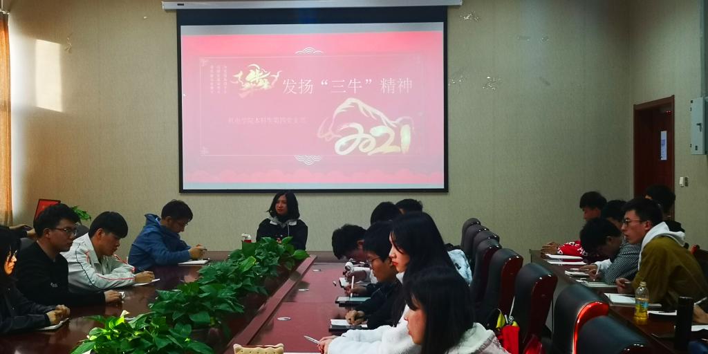 3月23日,结合习近平总书记日前在全国政协新年茶话会上的讲话精神,开云官网本科生第四党支部召开“发扬”三牛”精神,凝心聚力干事,全面开创学校高质量发展新局面”主题党日活动。会议由党支部书记孙坤岩主持。