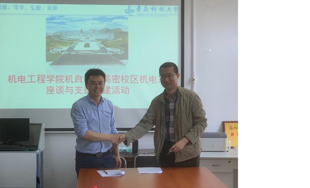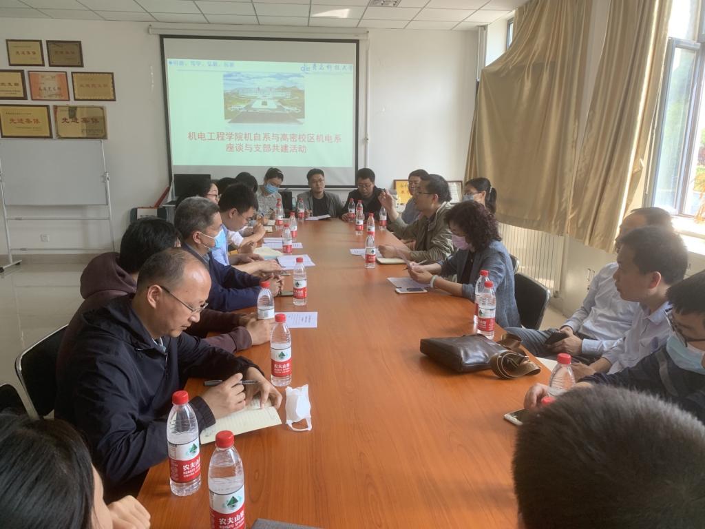 签约仪式后,机自系和高密校区机电系的全体老师,围绕党建和教学、科研等中心工作的合作进行了深入座谈。座谈结束后,高密校区机电系教师到机自系的实验室进行了参观。