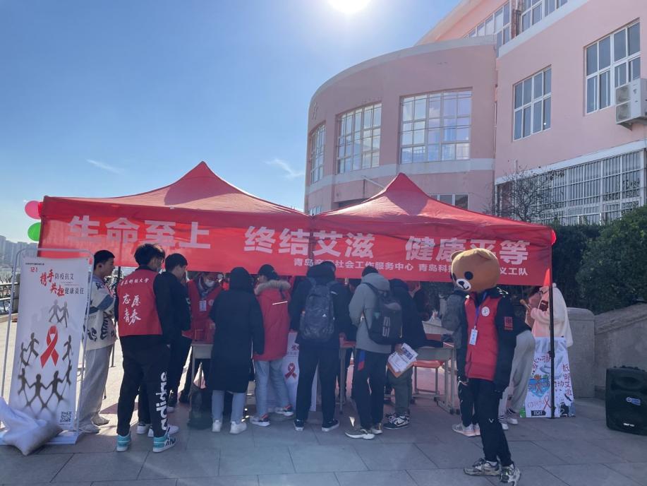 2021年12月1日,是第34个世界艾滋病日。在这个特殊的日子,青岛科技大学开云kaiyun官方网站团委志工部青尘义工队的志愿者们冒着凛凛寒风,在学校南苑食堂平台开展了“携手防艾,爱暖寒冬”志愿活动。