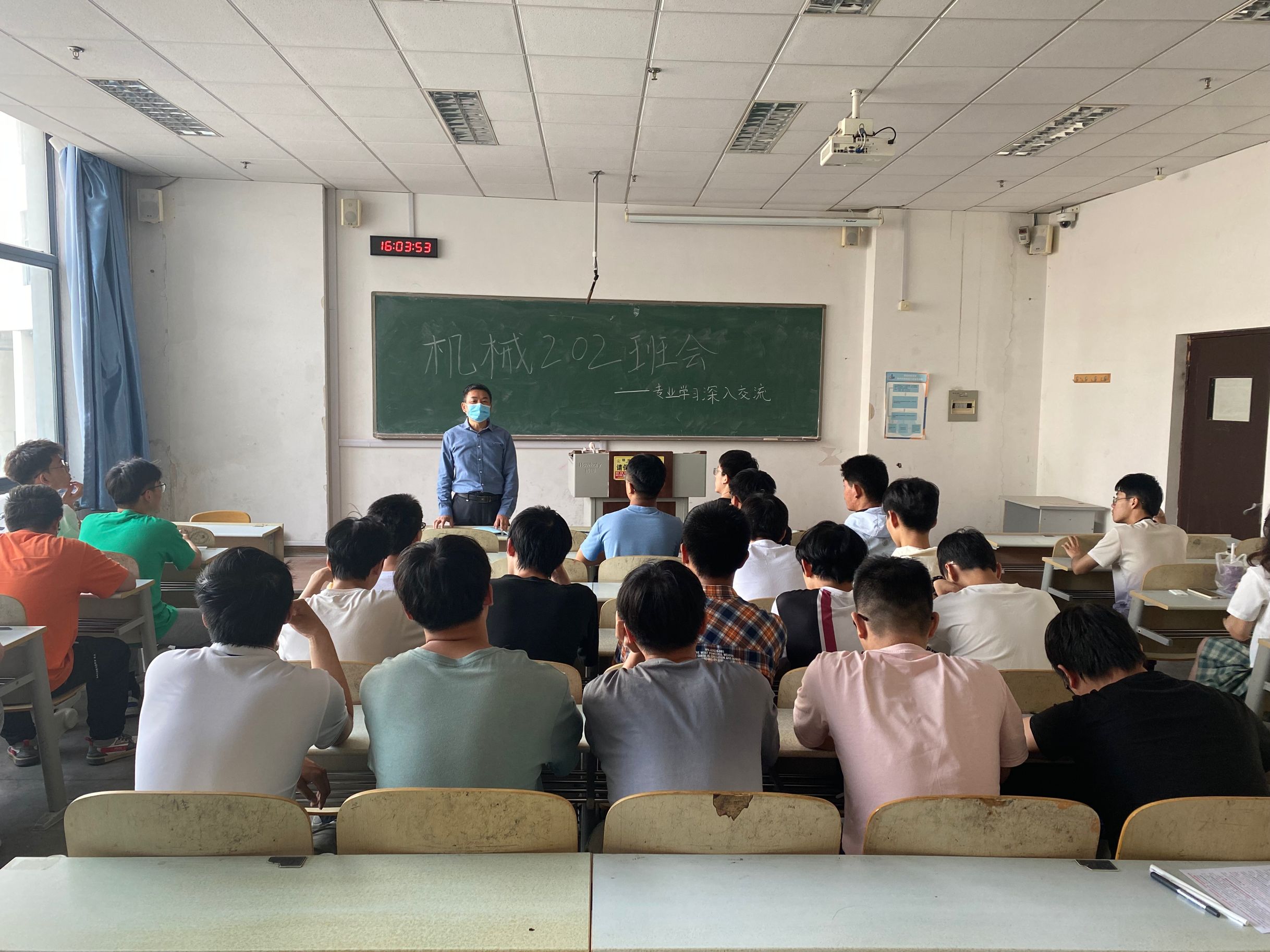 为了提高同学们对于机械专业的认识以及对未来自身发展方向的规划,并且加强同学们对于机械就业的理解,2022年5月31日,青岛科技大学纪委副书记王江忠同志深入学生班级,与机械202班学生在明德楼217开展了“专业学习深入交流”为主题的班会,与同学们深入交流在学习上、生活上的各种问题,王老师给机械202班学生提供了宝贵的建议和方案。