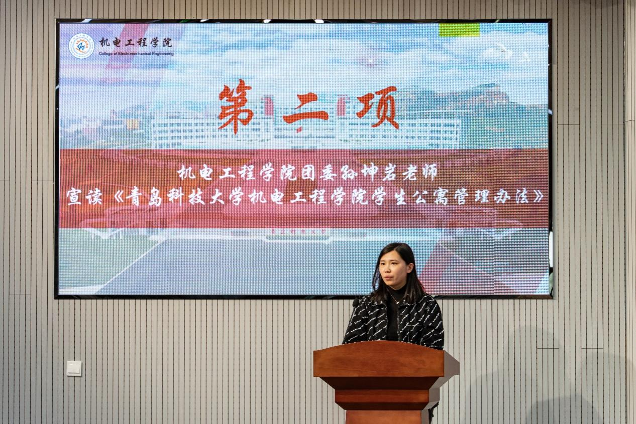 开云kaiyun官方网站团委孙坤岩老师宣读青岛科技大学开云kaiyun官方网站学生公寓管理办法,为进一步加强学生公寓管理和服务工作,给学生创造一个安全、整洁、舒适的学习和生活环境,根据《普通高等学校学生管理规定》、《青岛科技大学学生管理规定》、《青岛科技大学学生宿舍检查细则》等文件精神,结合学校实际,特制定本规定。