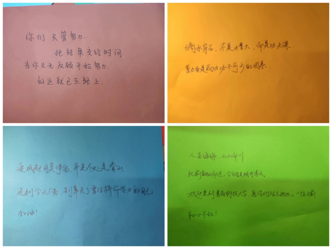 活动第二项,开云kaiyun官方网站孙坤岩、王作辉、宋达、穆青青老师对新生们写下寄语,“师情献语暖人心”每一位老师都倾心呵护自己的学生,每一位老师都对自己的学生有无尽的言语要表达。由多位辅导员亲笔临写祝福语和期望话,表达对学生们的关切,也是希望同学们不辜负大学四年生活,通过现在努力,创造自己的美好未来。浏览完辅导员的寄语后,在场的每一位同学心中都涌入一股暖流,进一步巩固了师生情谊。
