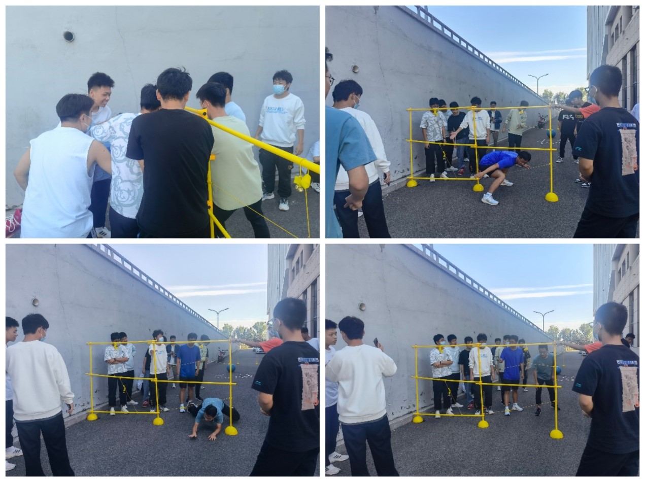 接着,开展了最令人兴奋的活动----“穿越电网”。“电网”顾名思义,就是不能触碰边网。活动考验团队协作能力和身体协调能力,各队全体成员依次穿过电网,若穿越过程中触碰“电网”,网上的铃铛便会响起,该成员需重新穿越,全队成员成功穿越后,用时最少的队伍获胜。各队队员集思广益,互帮互助,各显神通,展现了激昂的精神面貌。
