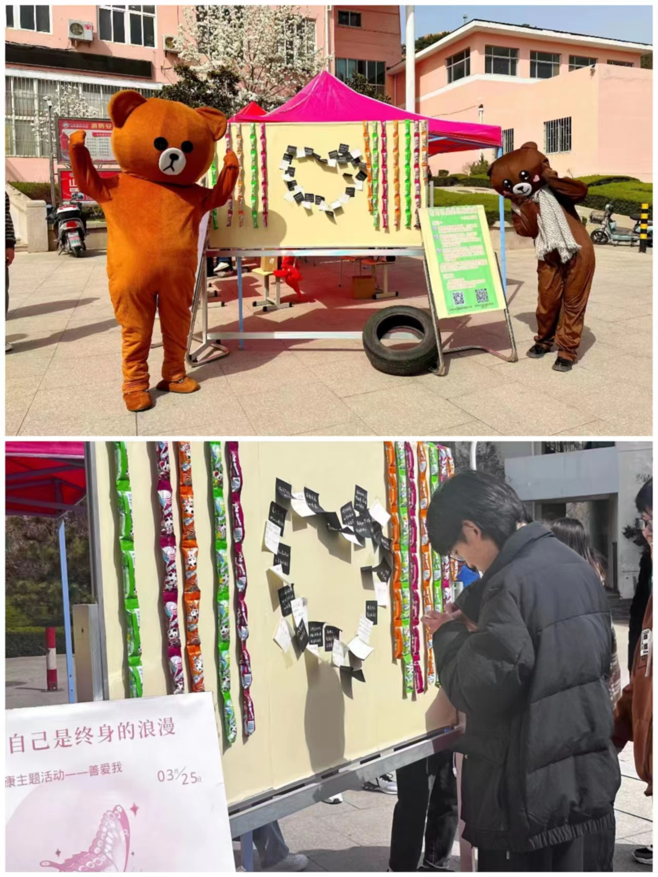 为进一步加强和改进大学生心理健康教育,倡导大学生善待自我、共创美丽校园。3月25日,开云kaiyun官方网站心理协会联合心音心理健康协会面向全校师生在南苑餐厅门口合办“3.25——善爱我”心理健康活动。