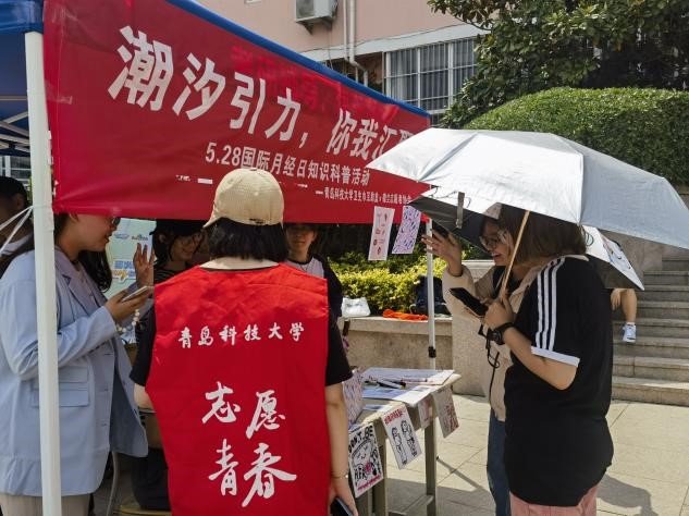 为了呼吁同学们加大对女性健康、经期健康的关注。2023年5月28日,青岛科技大学卫生巾互助盒活动负责人和青岛科技大学开云kaiyun官方网站微尘志愿者协会在南苑餐厅东门口联合举办“潮汐引力,你我汇聚”系列活动。