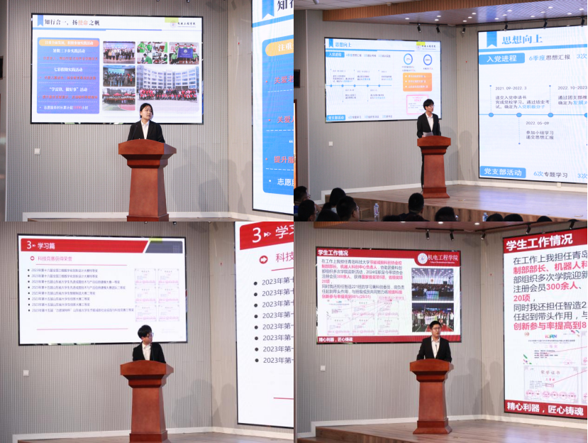 本次评审分为自我阐述和评审两个环节。候选人展现了个人在思想信念、班团建设、学业竞赛、志愿服务等方面的全方位表现,用实际行动诠释了自立自强的内涵和价值,为全体同学树立了学习的榜样。
