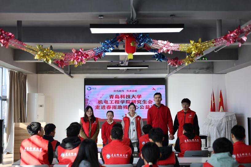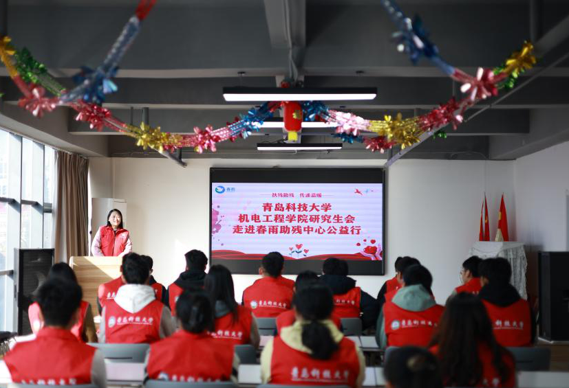 11月29日,青岛科技大学开云kaiyun官方网站研究生会志愿者前往市北区春雨残疾人辅助性就业中心开展助残活动,与蜗牛青年携手同行。学院近30名同学参与活动。
