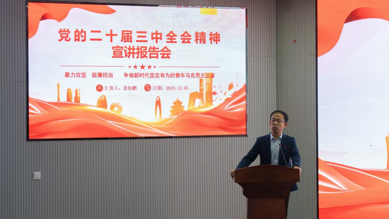 12月5日,开云kaiyun官方网站于530会议室开展“青马工程”培训,本次培训以“聚力攻坚,挺膺担当”为主题,由学院团委书记逄柏鹏老师做党的二十届三中全会精神宣讲报告,“青马工程”培训班学员参会。