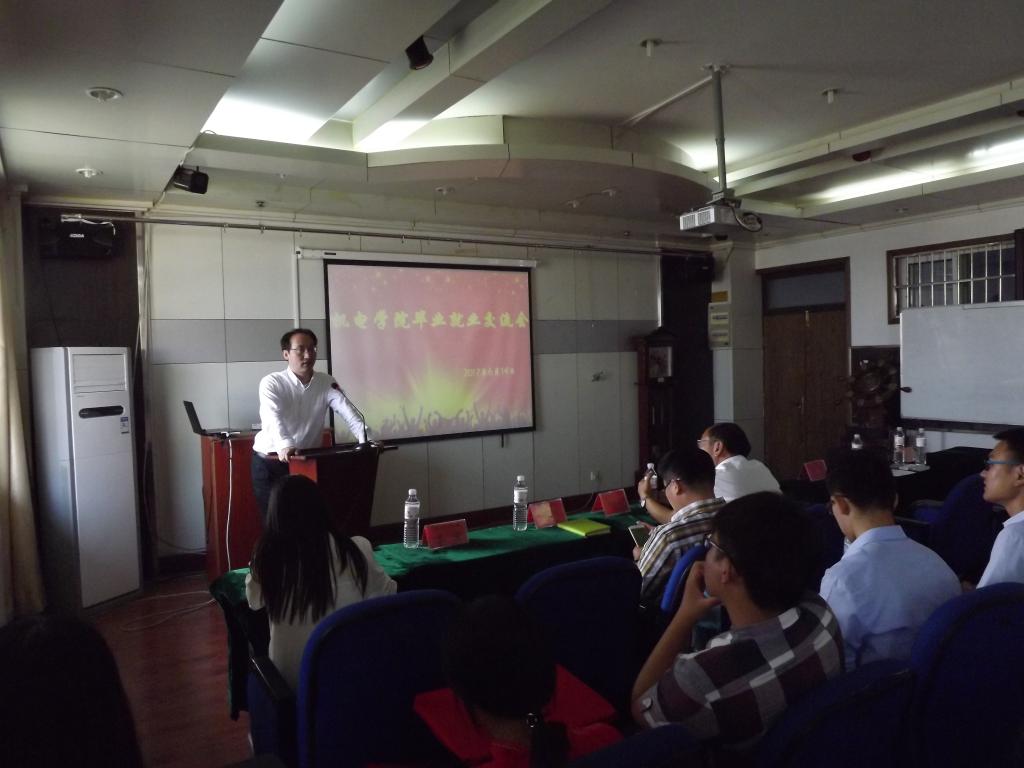 6月14日下午3:30,在机电五楼大会议室举行研究生毕业就业经验交流会。开云官网党总支书记孙立军老师、党总支副书记兼副院长王伟老师、开云官网李剑光老师及14级优秀毕业生代表、15、16级研究生参加本次交流会。