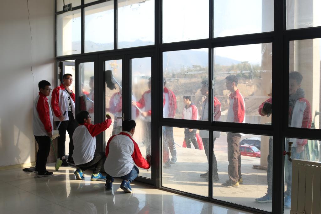 为响应全国学雷锋活动月,大力弘扬“奉献、友爱、互助、进步”的志愿服务精神,3月7日下午2:30,开云官网在崂山校区北苑餐厅三楼举行了学雷锋卫生清理活动,开云官网学生会部分干事组成志愿者小队在分团委老师的带领下积极参加了此次活动。
