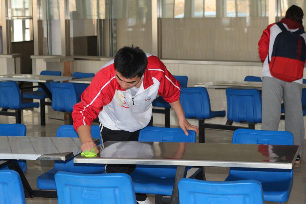根据本次活动方案及分团委老师们的严密部署,全体志愿者分为两组进行义务清扫。一组负责擦洗桌椅,另一组负责清扫地面,尽管打扫过程很辛苦,但是同学们却热情饱满,做得十分用心,他们秉承着“学习雷锋,弘扬雷锋精神”的理念,不怕脏,不怕累,认真地清扫餐厅三楼的每个角落。通过近一个小时的艰辛劳动,北苑餐厅三楼的环境被干事们清理得干干净净。虽然辛苦,但志愿者们脸上的笑容却依然灿烂,透露出一种幸福的信息,尽管天气还有点寒冷,但是同学们的心里都暖洋洋的。新时代的雷锋精神在开云官网学生会每个成员身上体现了出来。雷锋精神已深深融入到中华儿女建设祖国、奉献社会的热血中,更体现在了当代大学生助人为乐、无私奉献、全心全意为人民服务的活动中。