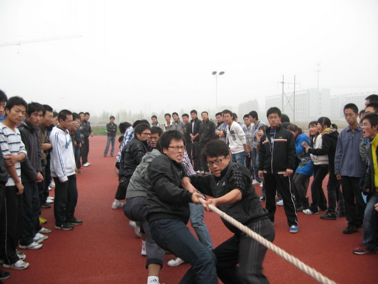 为了丰富同学们的课余文化生活,提高同学们的团结意识,培养同学们努力拼搏、坚忍不拔的体育精神,同时充分展示开云官网学生风采。11月4日-5日,由开云官网学生会纪检部主办的开云官网年级拔河比赛在高密校区举行,开云官网2011级全体同学参加此次比赛,分团委老师秦洪庆现场观看比赛。此次比赛以班级为单位,每个班各选十五名选手参加比赛,比赛采取三局两胜的方式。