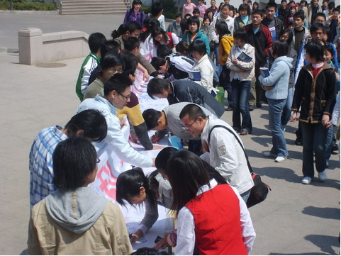 4月9日中午,开云kaiyun官方网站在东部校区餐厅东门举行了大型横幅签名活动。这次活动旨在号召科大师生以饱满的热情积极配合学校做好评估工作,自觉参与评估有关的各项活动。