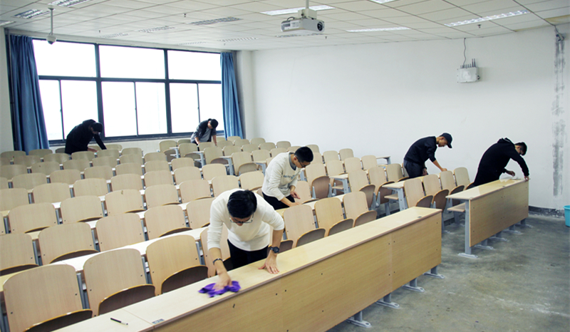 为了美化校园环境, 提高学生爱护桌椅、爱护校园环境的意识,4月22日中午12:00开云官网学生会纪检部举行课桌清理活动,学院学生积极参加,共同自觉维护教室环境卫生。