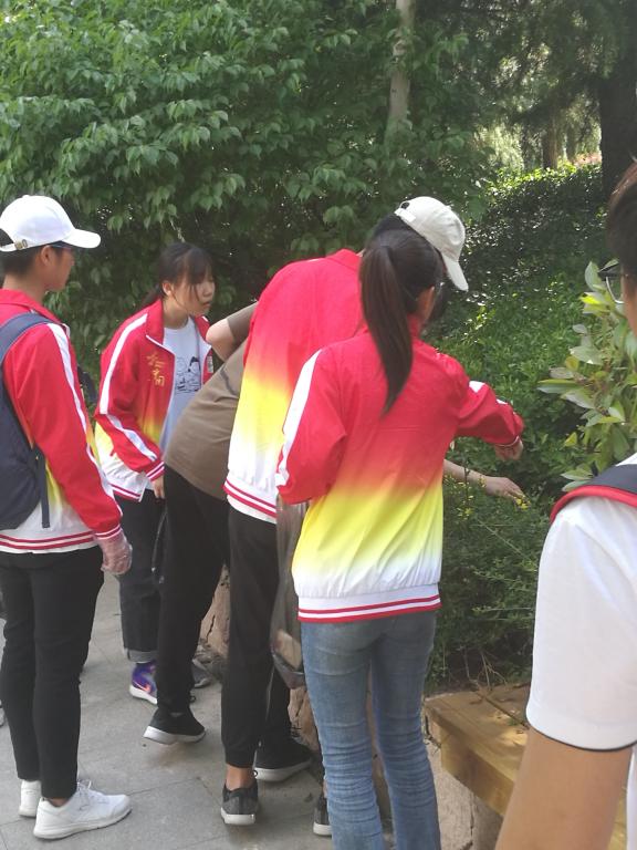 全体成员到达李村河公园,那时的李村河公园艳阳高照,但是炎热的天气并没有影响队员们的热情。下午2:10,一切准备工作就绪,清理活动正式开始。队员们分成两组,分别沿李村河的两岸寻找并捡拾垃圾。迎着骄阳,队员们没有一丝懈怠,兢兢业业地寻找李村河岸边的每一点垃圾,连最小的烟头也“收入囊中”。经过一个小时的清理,李村河沿岸及公园内都变得风景宜人。微风轻拂,让队员们神清气爽、心旷神怡,骄阳也似乎不再燥热,反而变得温顺起来。清理活动就在这满满的收获中顺利结束。