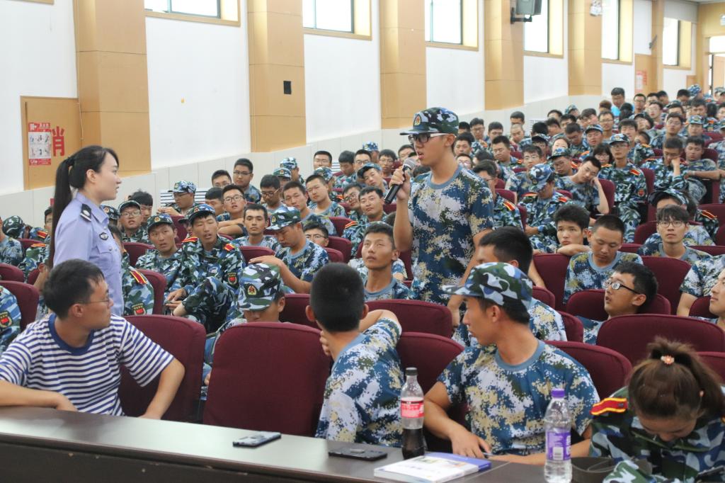 在讲座中,宋笛警官向学生讲解不同诈骗方式,并且与学生现场互动,让同学们自由发言,讲述发生在自己或者家人身上的一些诈骗案例。同学们积极踊跃地与警官交流,讲述了不同种诈骗案例,通过这些真实发生在学生身上的案例,让学生们更好地提高防诈骗能力,提高分析问题的能力。