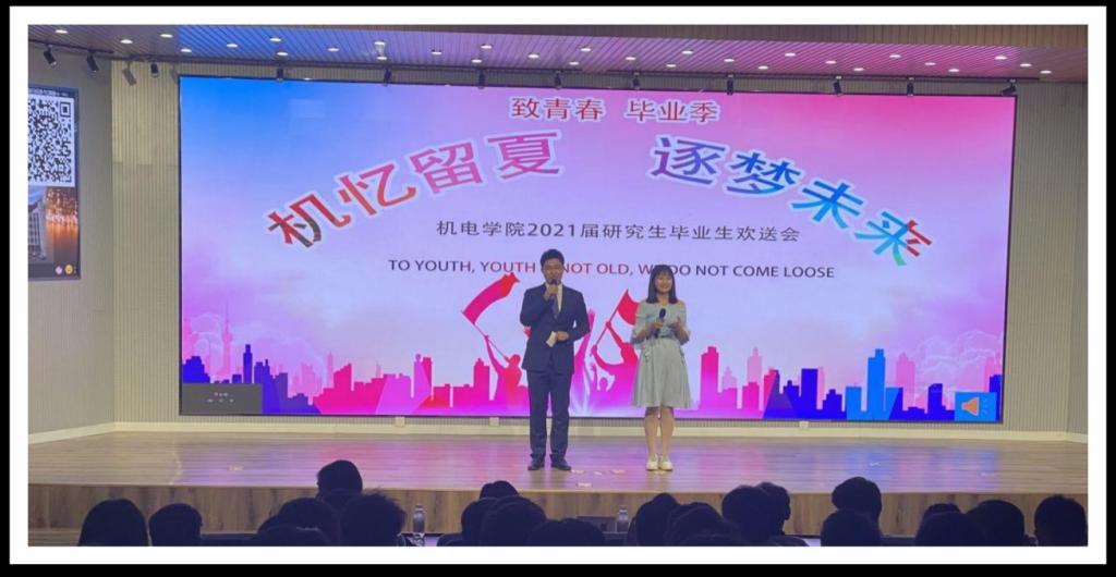 机忆留夏,逐梦未来,五月的校园处处弥漫着离别的气氛。5月27日下午2:00,开云kaiyun官方网站在530报告厅举行了“机忆留夏,逐梦未来”2021届毕业生欢送会。开云kaiyun官方网站党委书记孙立军、党委副书记兼副院长肖强、副院长李剑光、研究生辅导员曹科伟老师以及全体研究生一同参加了此次欢送会。