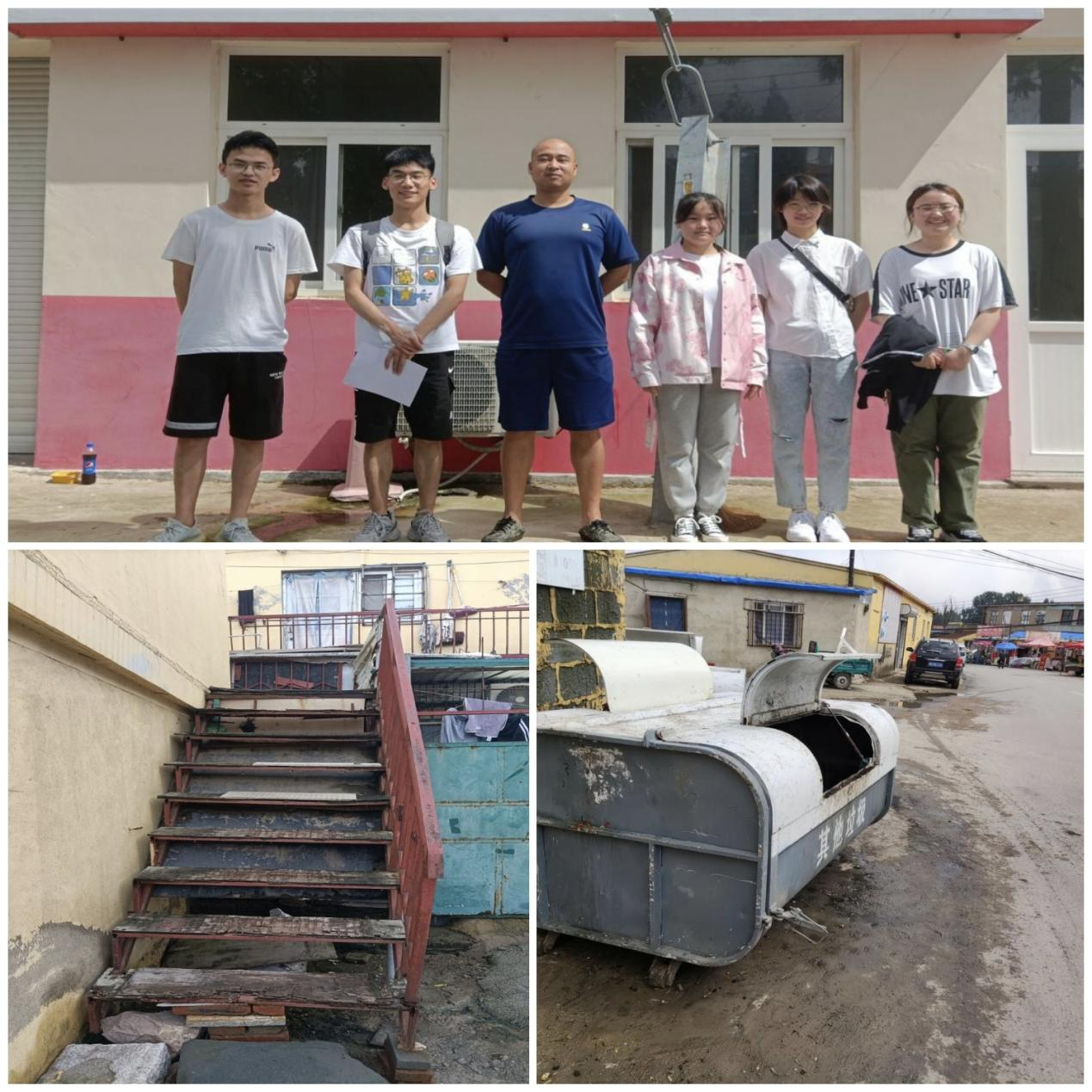 7月17日,经过团队成员一天的细致走访观察,发现村内多处垃圾箱使用不规范,设施陈旧等问题。秉承“为村民服务,真实有效调研”的态度,团队成员向相关负责人如实反映问题并提出了合理建议,并采访到了社区微型消防站工作人员,就村内消防安全及消防工作站职能问题展开讨论。采访得知,消防站建成以有很长一段时间,处理村民生活问题、保障村民消防安全颇有成效。采访结束后,调研小组成员与工作人员一起合影留念。