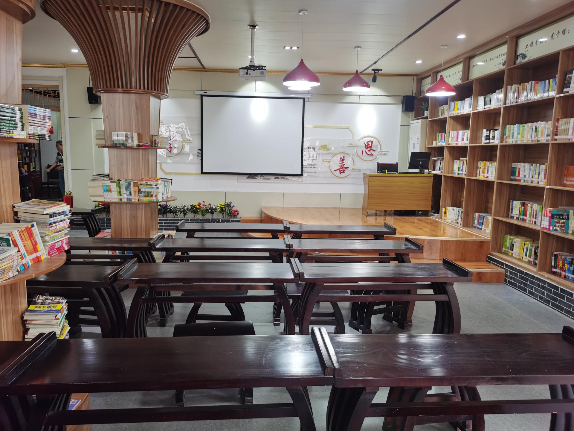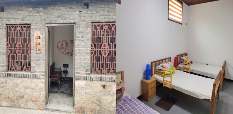 与图书馆相隔不远的地方就是老人幸福园,园内为老人置办了电视,按摩椅,单人床等娱乐和放松的器具,建立了免费的老人食堂、理发室等。