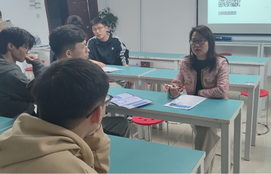 下午,深圳越疆科技股份有限公司召开宣讲会,周秋兰为参会同学详细介绍了公司的发展历史、职业发展路径、工资待遇等情况。宣讲会后,周秋兰与有意愿同学进行了初步沟通交流。