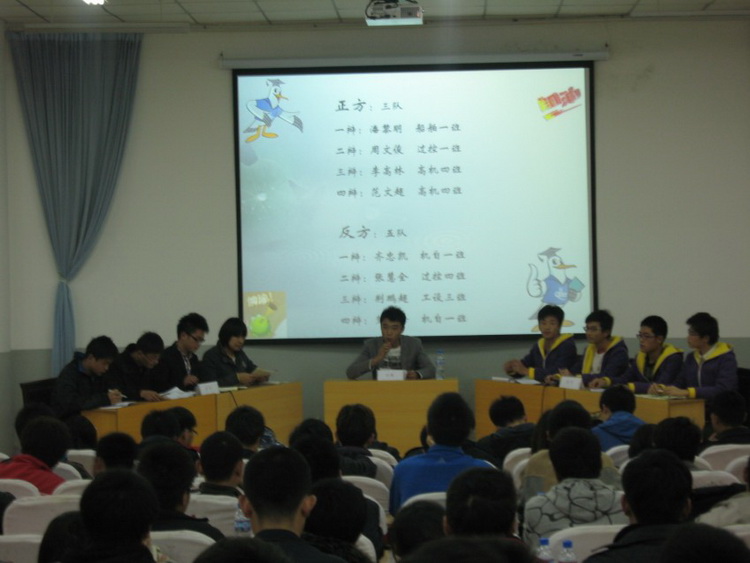 11月27日晚19:00,由开云官网学生会主办,工业设计113班承办的开云官网2011级年级辩论赛决赛在高密校区通德会堂202举行。
