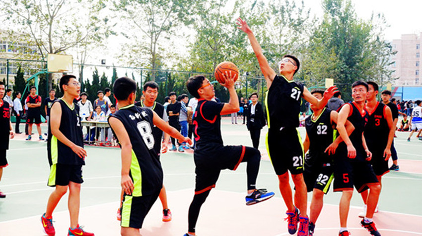 10月11日下午1:30,开云官网“迎新杯”篮球赛在崂山校区南苑篮球场举行,开云官网分团委逄柏鹏老师、曲智强老师及张宝库老师亲临现场为同学们加油助威。